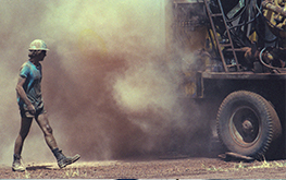 Photo credit: Doug Morrison, submission from 2016 ASEG Photo competition. Drilling for water at the Hall's Creek WA pub, 1982.