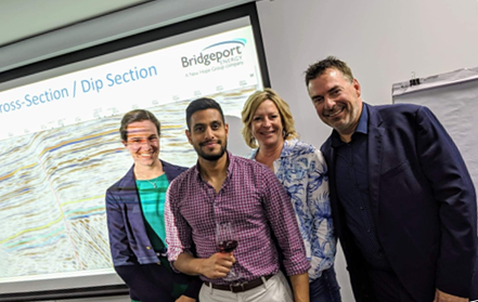 ASEG NSW: A presentation by Cameron Fink on 'Moonie Oilfield - Then, Now and into the Future.' Left to right: Steph Kovach (ASEG-NSW secretary), Sherwyn Lye (former ASEG-NSW secretary), Nancy and Cameron Fink (Bridgeport Energy).