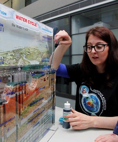 Photo: Millicent demonstrating groundwater concepts to public at Geoscience Australia Open Day.