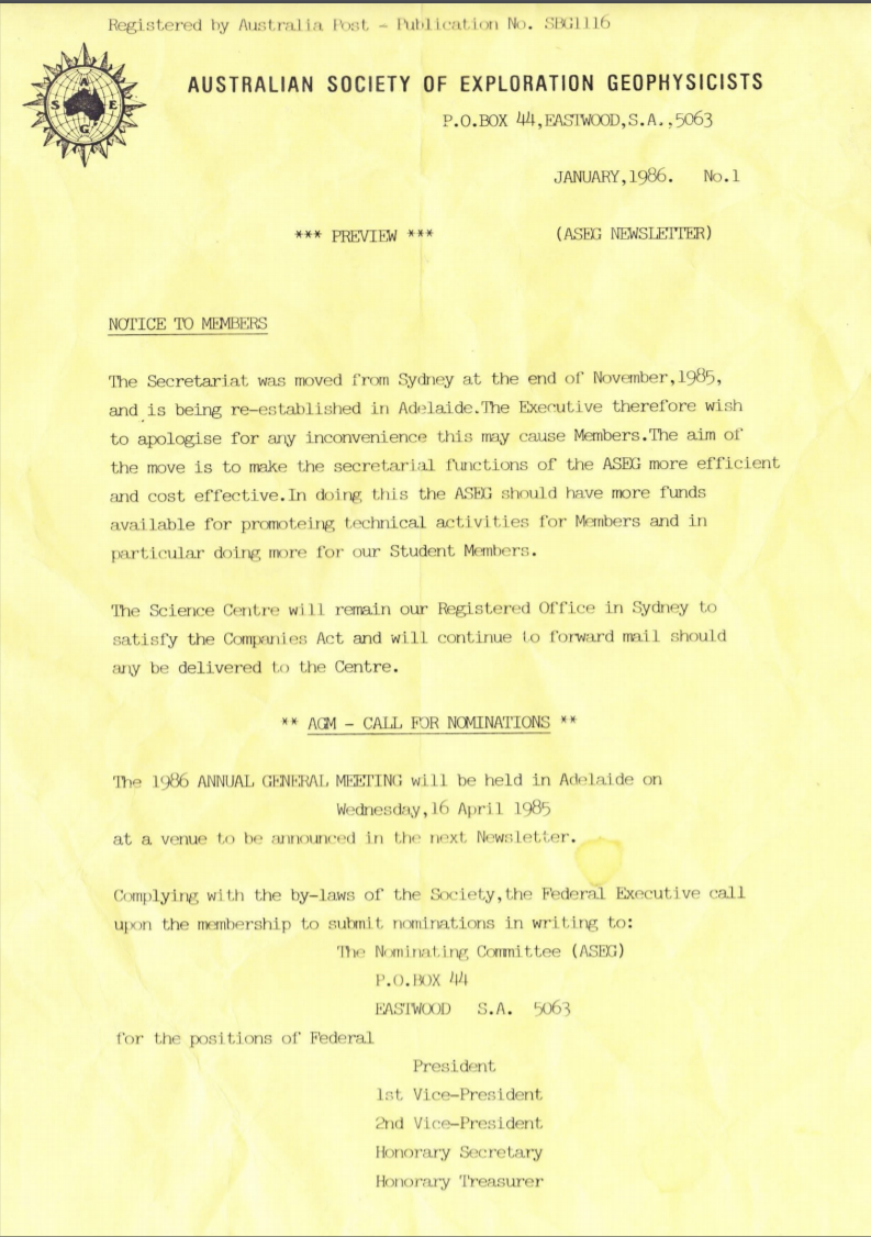 We are very excited to share that our webmaster Ian James has been hard at work uploading 195 issues of Preview to the ASEG website, providing a fantastic opportunity for a stroll down memory lane and see just how much our mainstay magazine Preview has changed over the years, or to dig up an old favourite article! Also, if you would like to help us retain our history - do you have a copy of any of the 1986, 1987 or 1988 issues of Preview at home in the shed? If so, we would love to hear from you at secretary@aseg.org.au so that we can update our archive. A bottle of ASEG wine would be a deserving prize for those who managed to dig any issues up that aren't on the website.